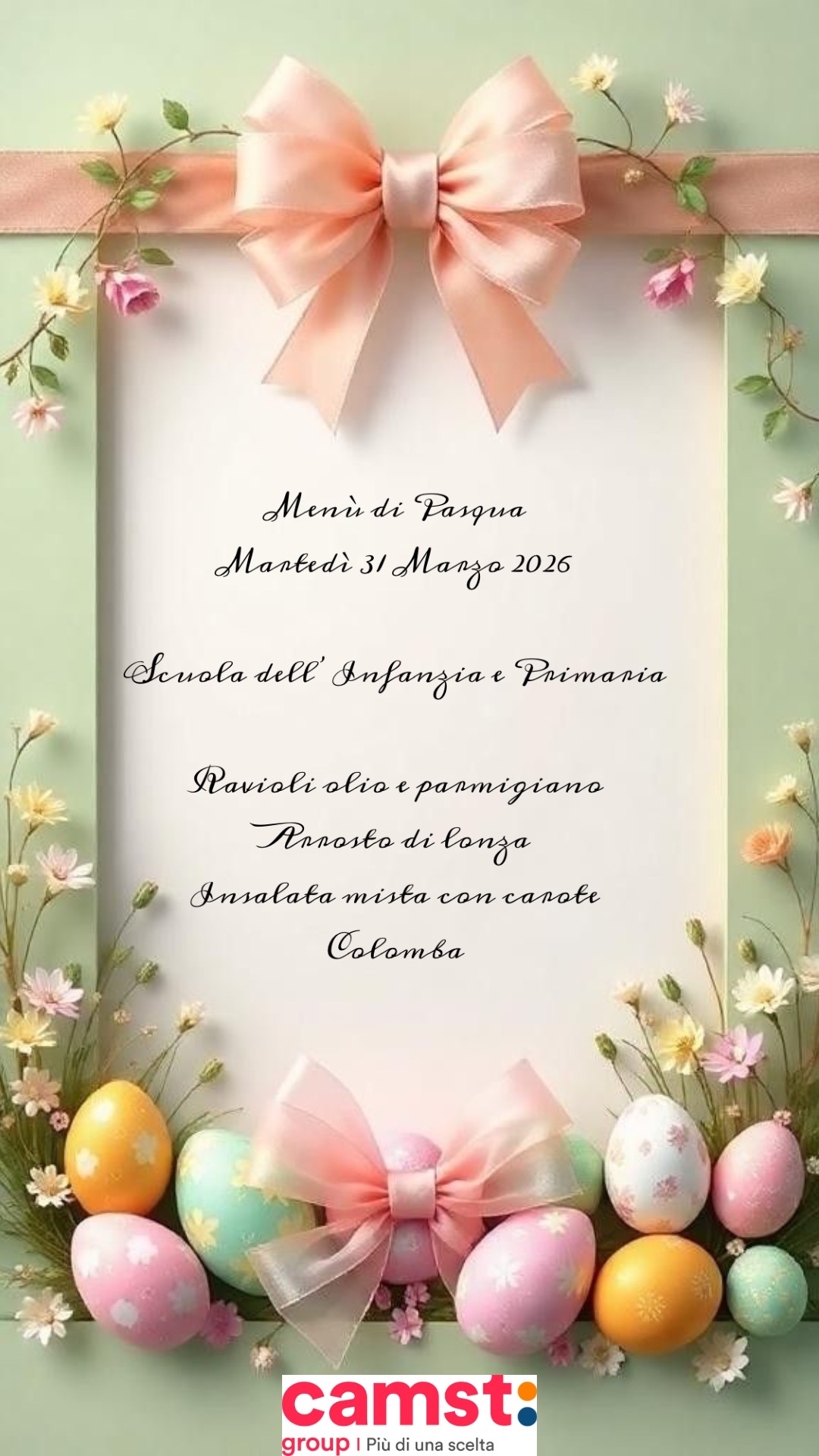 Menu di Pasqua del 31 Marzo 2026 Scuole Primarie ed Infanzia.